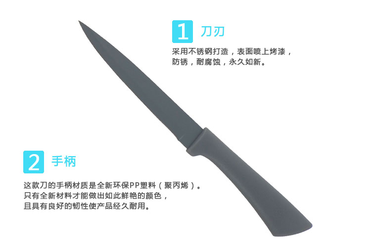 這款刀的手柄材質是全新環保PP塑料(聚丙烯)。