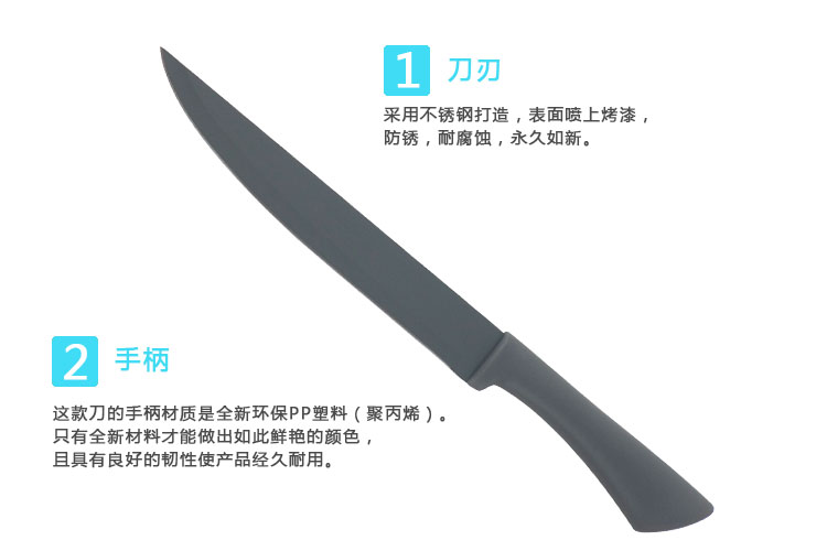 這款刀的手柄材質是全新環保PP塑料(聚丙烯)。