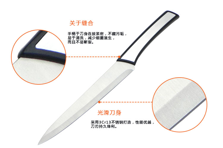 手柄于刀身連接緊密,不藏污垢,易于清洗,減少細菌滋生,而且不易斷裂。
