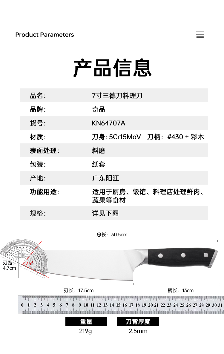 7寸三德刀料理刀