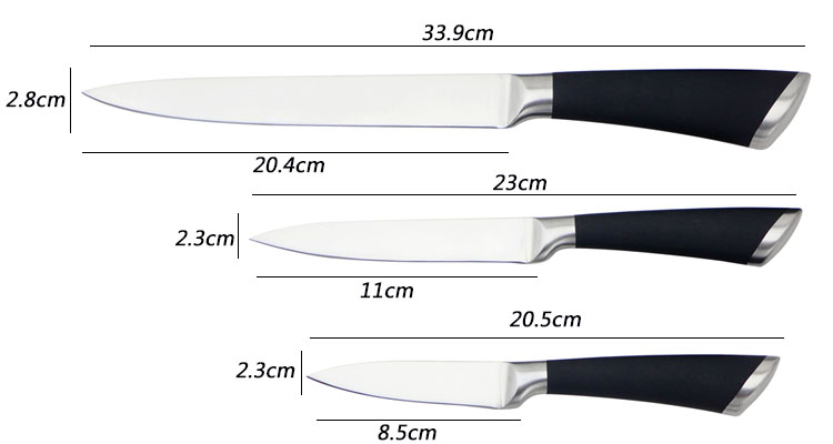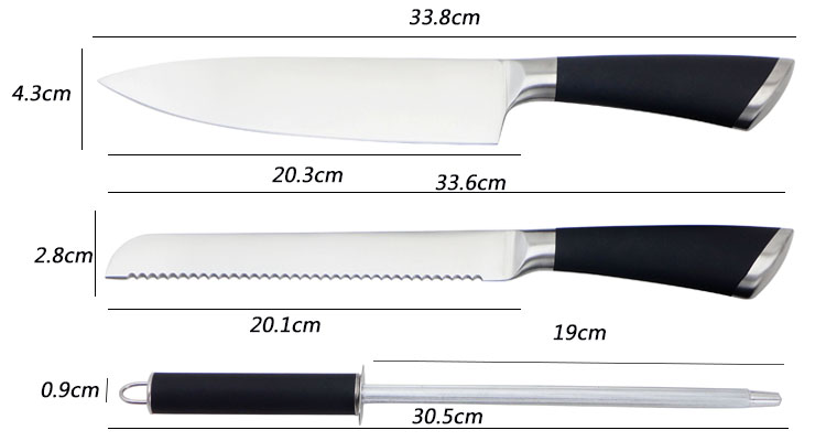 8"面包刀 | 件頭厚度:2.5mm, 件頭寬度:2.8cmcm,? 件頭長度:20.1cm, 總長度33.6cm | |
