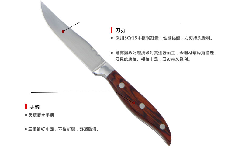 采用3Cr14不銹鋼打造,性能優越,刀刃持久鋒利。