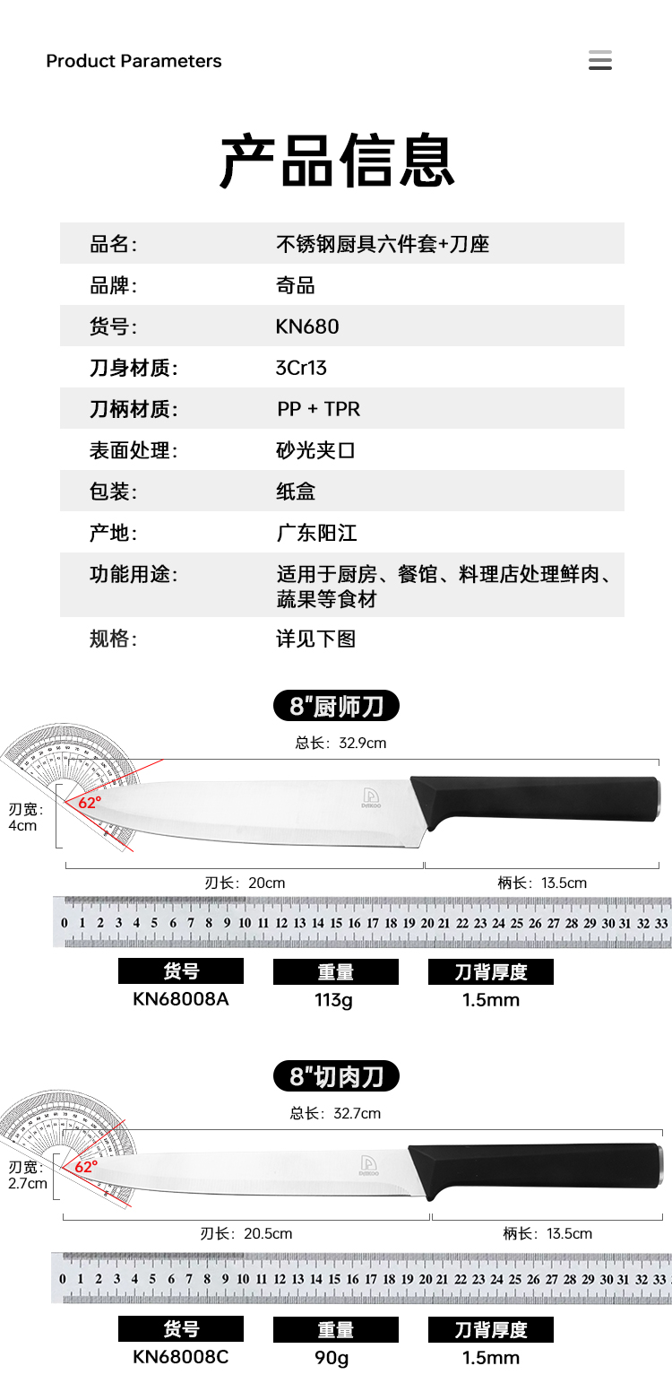 不銹鋼廚房套刀