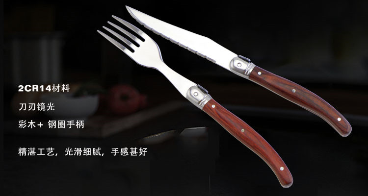 件頭材料:2CR14,?手柄材料:彩木+?鋼圈